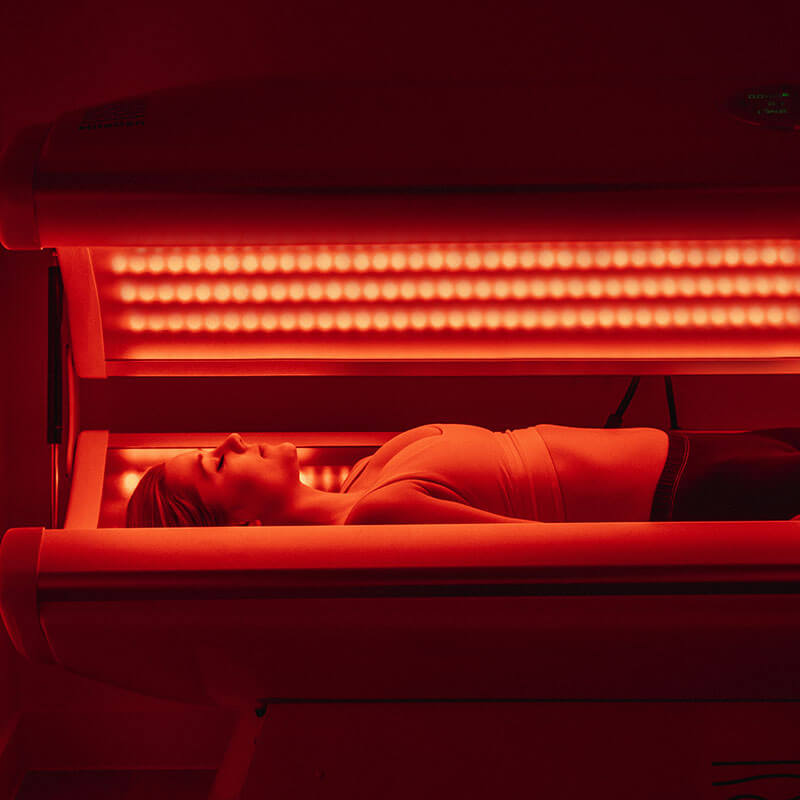 Relax and let our upgraded red light (PBM) bed / panels utlise near-infrared light to improve your skin health, cognitive function + these benefits: